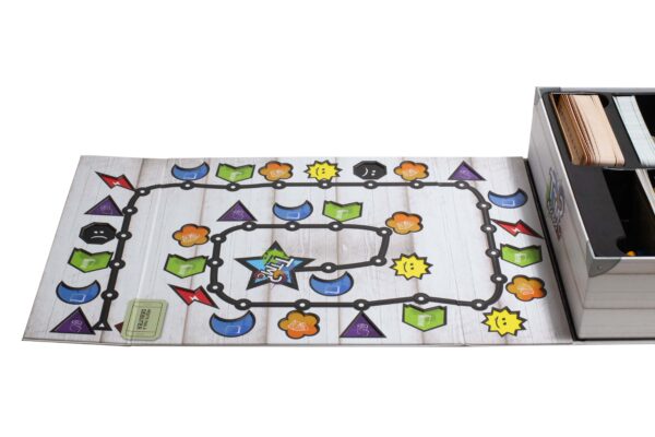 Une ligne de guidage en vernis épais conduit les joueurs de la case départ à la dernière case, en suivant une spirale tactile qui permet